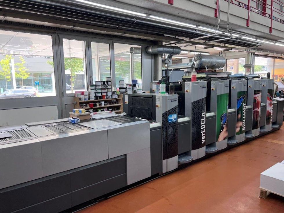 | Detalles | solo 39 mio. de impresiones torre de barniz (racleta de cámera) Prinect Easy Control Prinect Consola de Control con telemando para zonas de entintado, velocidad de los rodillos del tintero, los registros circunferencial, lateral y diagonal, con Job Memory Card y pantalla táctil ALCOLOR Vario grupo mojador con circulación y refrigeración CombiStar atemperador de las baterías AUTOPLATE sistema automático de cambio de planchas dispositivo de lavado automático de los rodillos entintadores dispositivo de lavado automático de la mantilla y cilindro impresor hasta 0,6 mm pulverizador LE UV secador en la salida con 1 lámpera salida de pila alta y prolongada accesorios standard (refrigerado por agua, excl. refrigerador exterior) (máquina conectada de alimentación de aire central) |