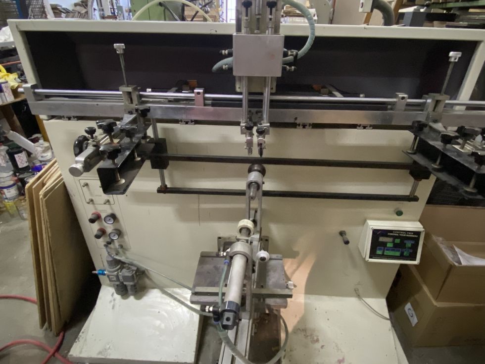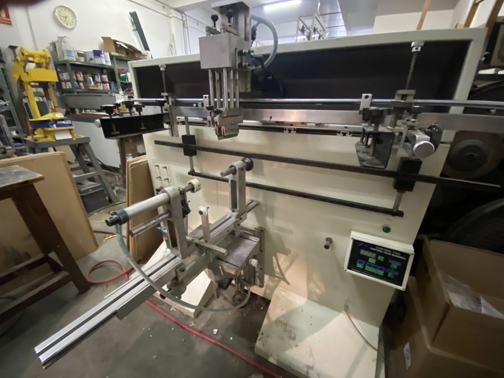 | Detalles | Máquina serigrafía para piezas redondas de hasta 290 mm de diámetro y 930 mm de recorrido. Incluye utillaje para soplado de botellas y soporte de rulinas para tarros. En muy buen estado. Ha trabajado poco. |