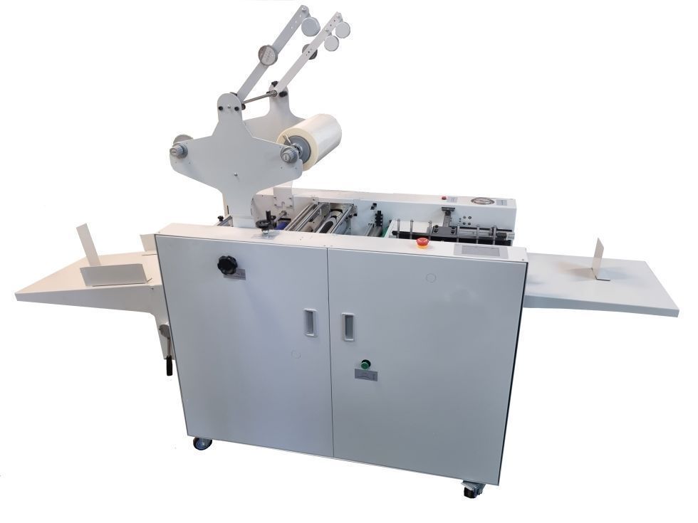 | Detalles | Introducción automática de hojas. Sistema automático de registro y solapado de los pliegos mediante motor paso a paso. Controlada mediante PLC y pantalla táctil. Fotocélulas de control del paso de papel, para controlar en todo momento la entrada y la salida del papel. Rodillo de presión de teflón, que evita que el film se pueda pegar en él y apto para el peliculado de pliegos provinientes tanto de impresión en offset como en digital. Accionamiento hidrálico del rodillo de presión. Doble disco dentado para marcar el plastico y facilitar la separación de los pliegos. Cortador separador compacto y de regulación automática. Sistema de corte mediante rodillo tijera. Sistema rompe fibras para evitar el abarquillado del papel. Sistema de aire integrado y regulable para una alimentación de papel fiable. |