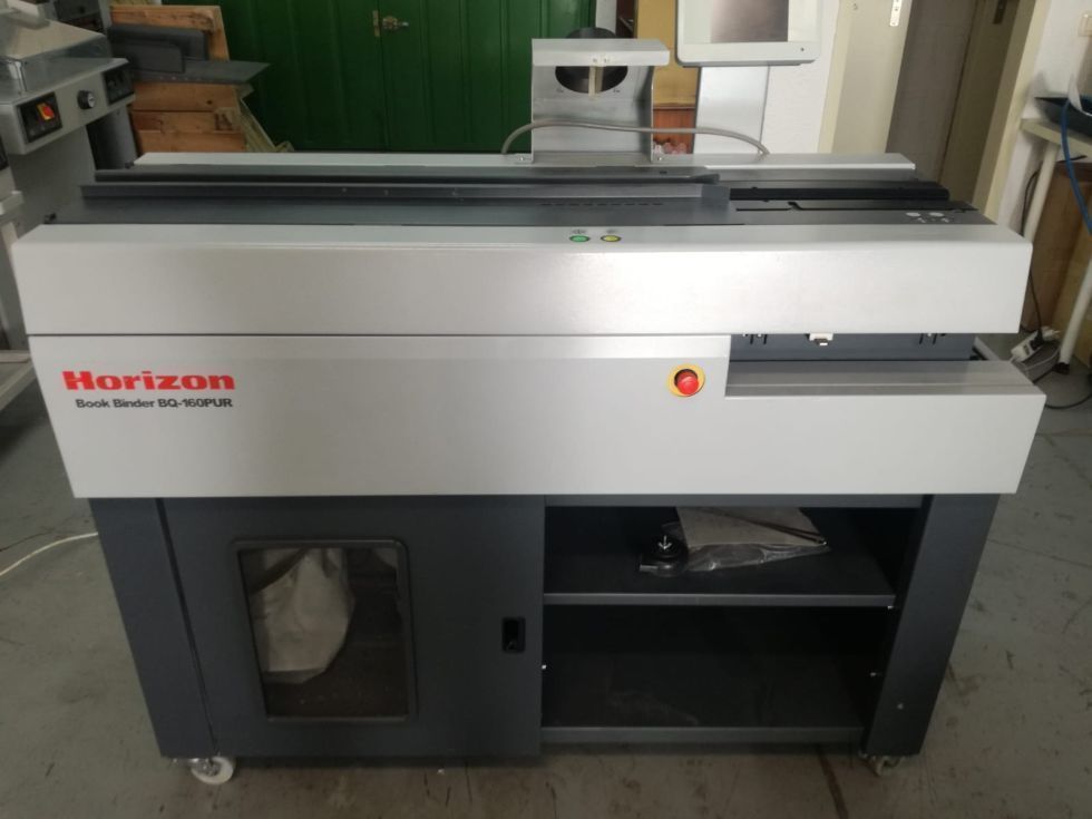 | Detalles | Maquinifica encuadernadora de PUR BQ160. Una mordaza manual. Ideal para tiradas pequeñas sencilla y manejable. Una buena marca. La vendemos por adquirir una superior mas rapida. Solo 18.000 Libros¡¡¡¡¡¡ Encuadernadora de cola PUR Horizon modelo BQ-160, este equipo incorpora la última tecnología de Horizon en sistemas de encuadernación con cola PUR. Es un equipo ideal para realizar trabajos de libros personalizados, tiradas cortas bajo demanda, photoalbum, photobooks de viajes…. La máquina dispone de diferentes modos de encuadernación: A través de la pantalla táctil se puede seleccionar uno de los tres opciones de encuadernación, libros con cubierta, álbumes de fotos con guardas más lomera y por último encuadernación de talonarios/tacos. El único equipo en su segmento que puede realizar libros fresados y posteriormente posicionar las guardas en una única pasada. De esta forma se consigue realizar el conjunto del libro y gurada para un proceso posterior de encuadernación en tapa dura. Es un equipo ideal para tiradas cortas y medias, los ajustes son automáticos y sencillos para el operaror gracias a la pantalla táctil a base de iconos. La calidad de encuadernación es profesional, la Horizon BQ-160 PUR es la encuadernadora que no puede faltar, el complemento ideal en los talleres de impresión digital y offset. Consiguiendo realizar libros de formatos máximo hasta 350 x 300 mm y tamaños mínimos de 70 x 128 mm. Las velocidades de producción son de hasta 180 ciclos/h. |