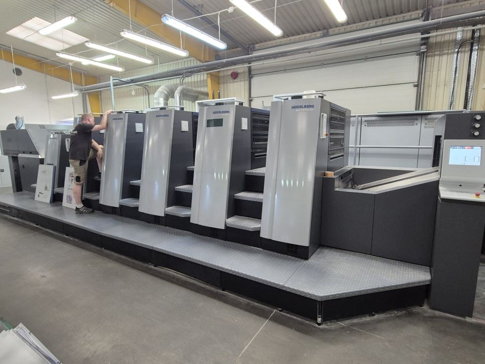 | Detalles | torre de barniz (racleta de cámera) Prinect INPRESS Control WallScreen Prinect Consola de Control con telemando para zonas de entintado, velocidad de los rodillos del tintero, los registros circunferencial, lateral y diagonal, con Job Memory Card y pantalla táctil ALCOLOR Vario grupo mojador con circulación y refrigeración CombiStar atemperador de las baterías AUTOPLATE sistema automático de cambio de planchas PRESET PLUS ajuste automático al formato del pliego dispositivo de lavado automático de los rodillos entintadores dispositivo de lavado automático de la mantilla y cilindro impresor StaticStar Compact pulverizador Weko AP 262 CAN IR-secador DryStar CAN salida de pila alta con Air Transfer Sistema accesorios standard |