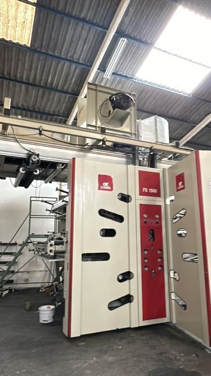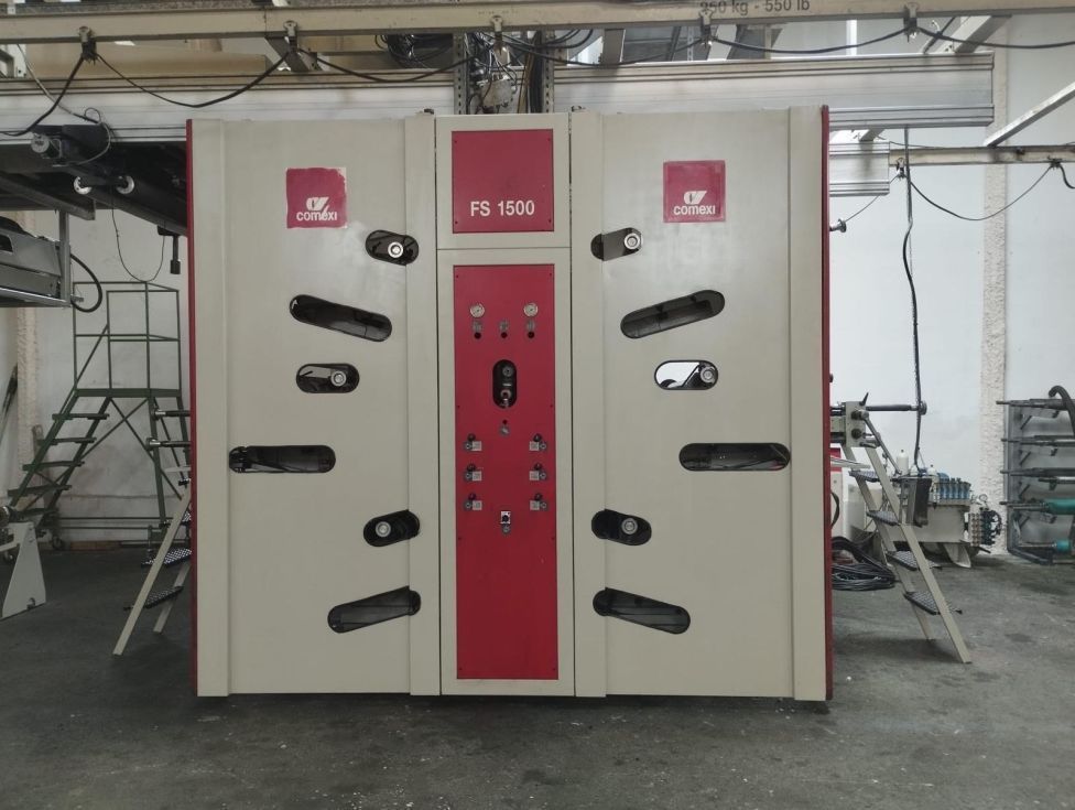 | Detalles | Super oferta flexo COMEXI FS1500 tambor central del año 1999 y 1200 mm de ancho, Anilox cerámicos con rasquetas; tratador Corona en línea; cambio rápido de camisas portacliches en la máquina; desarrollo Min/Max: 340/950 mm; alineadores de material; diámetro máximo de bobina en desbobinador 1400 mm y diámetro en rebobinador 1000 mm. Maquina revisada y puesta a punto. |