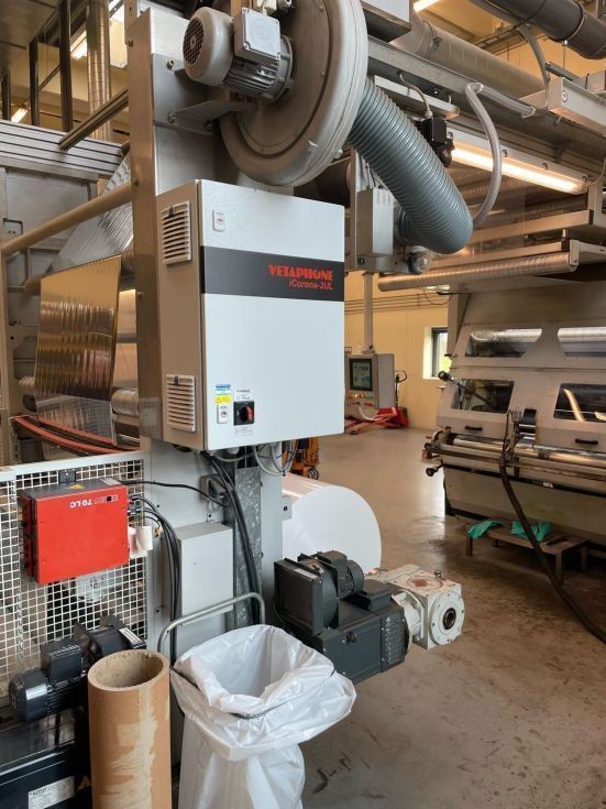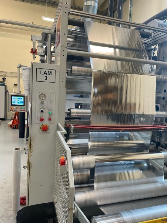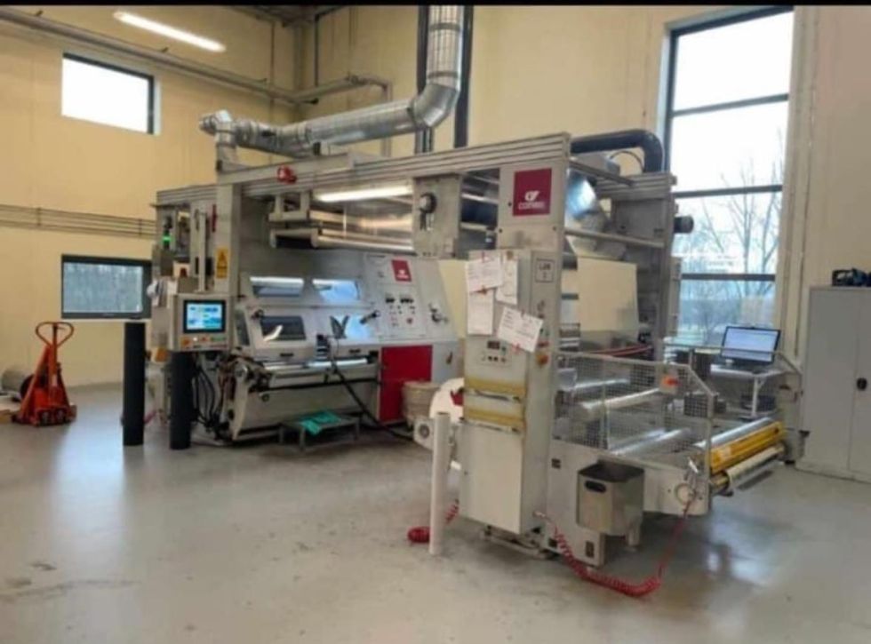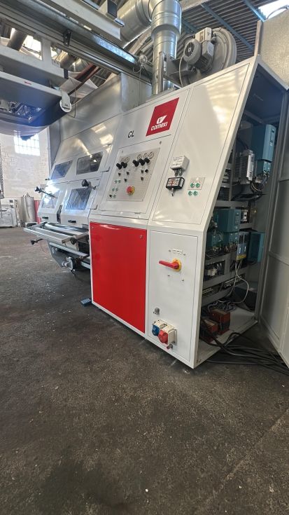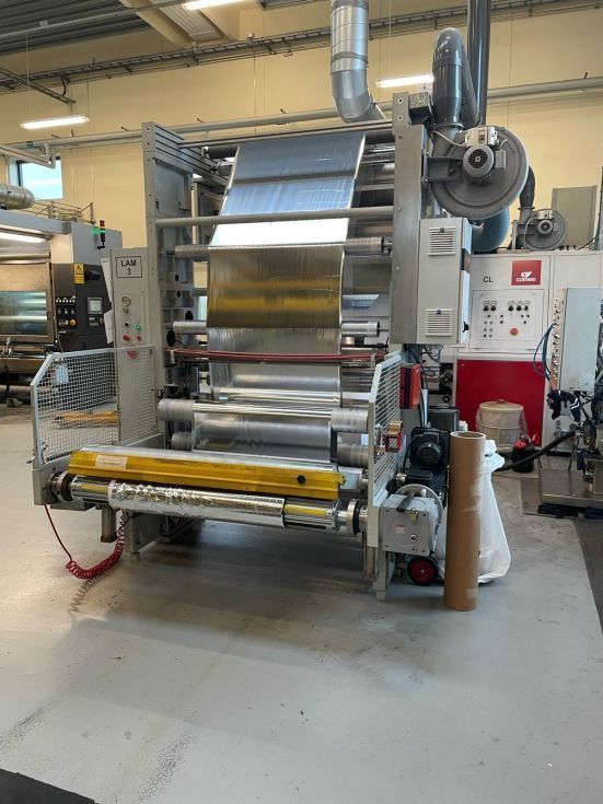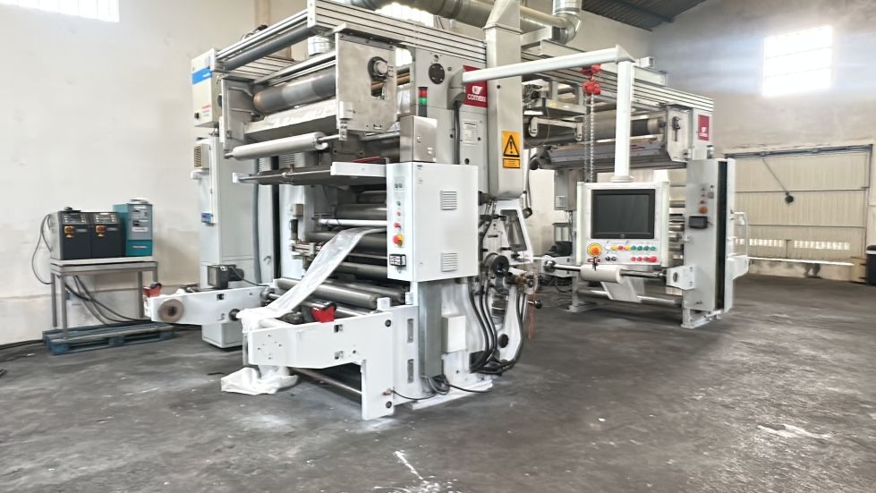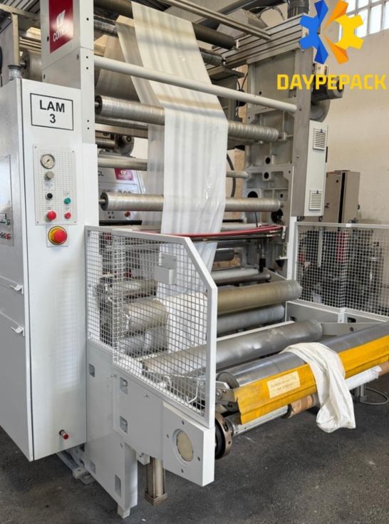 Marca: COMEXI Modelo: CL120 Año: 2002 Ancho material: 1270 mm Sistema solventless Cambio rápido de camisas en la máquina Alineadores de material: BST Dos tratadores corona con rodillo cerámico en línea: VETAPHONE del año 2021 Dosificador de dos componentes marca: DOPAG Diámetro máximo de bobinas: 1000 mm Pantalla táctil para el control de la máquina Ejes neumáticos de 76 y 152 mm. PLC SIEMENS Termoreguladores para control de temperatura de rodillos. Velocidad de trabajo: 200 mts/mn Medidas: 7 mts de largo x 3 mts de ancho x 3 mts de alto. Polipastos eléctricos Voltaje: 380V/60Hz Disponibilidad: inmediata Incluye repuestos y piezas de la máquina. |
