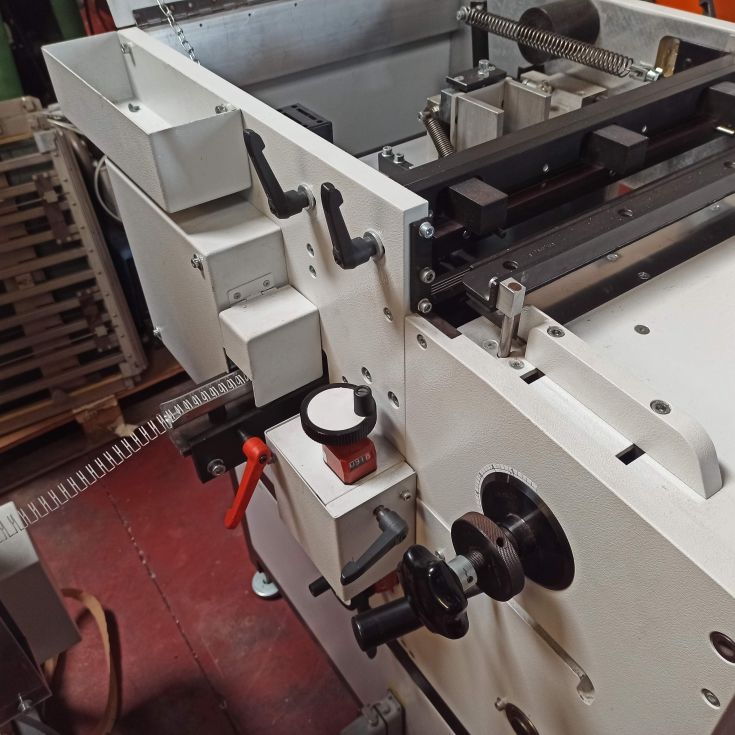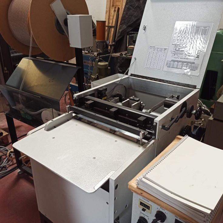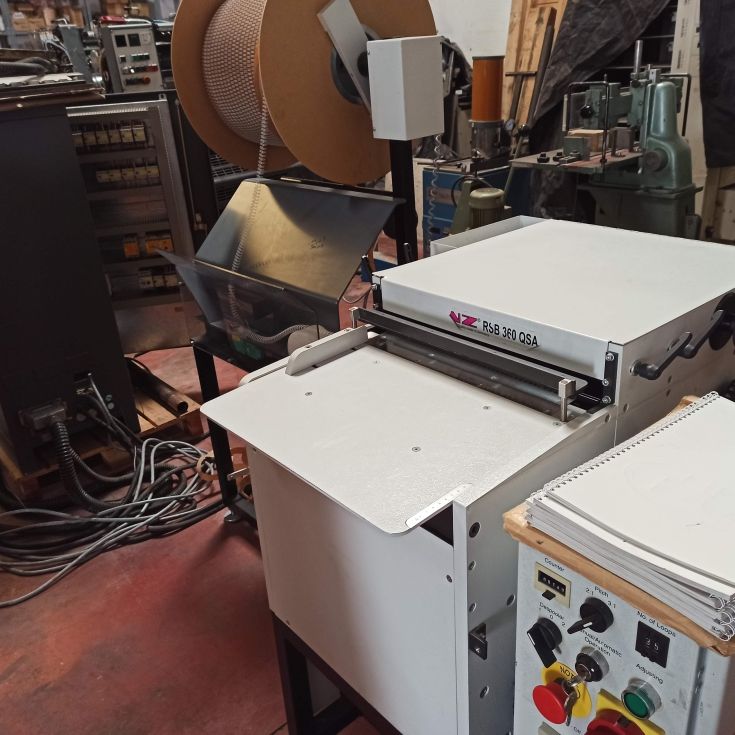 | Detalles | Máquina semiautomática de encuadernación para insertar wire-o marca Renz RSB360. Corte y cierre del wire en la misma operación. Ancho máximo de trabajo 36 cm. Fabricada en 2007. Cuenta con pasos para el 3:1, 5/16" y 3/8". Perfectas condiciones.