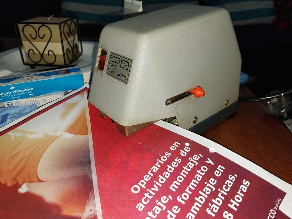 | Detalles | Por no usar tengo grapadora eléctrica en venta muy bien estado puede ver funcionado grapa hasta 40 hojas muy rápido.fabrico en Alemania |