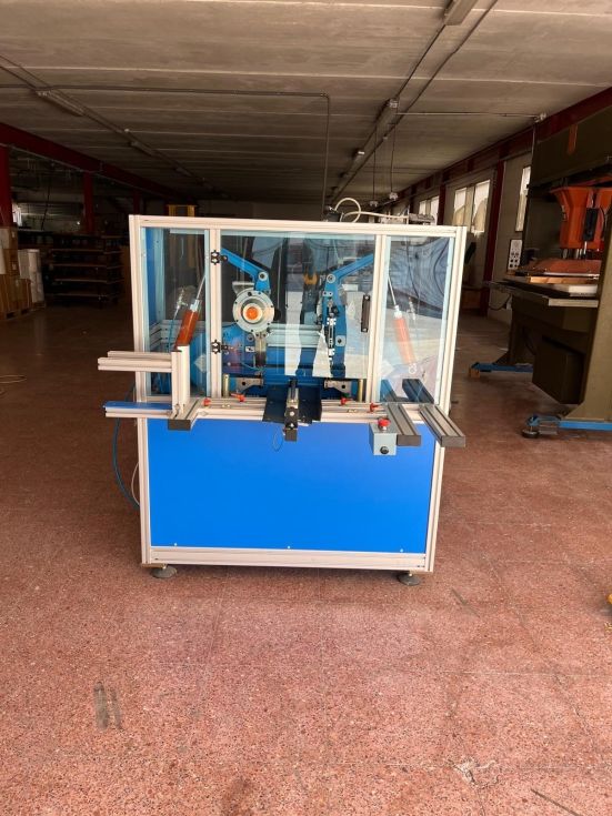 | Detalles | Máquina automática para remachar y hendir en un ciclo , remacha y aplica el mecanismo. Adecuada para carpetas standard de oficina. Permite hendidos múltiples en el cartón, Alimentador automático non-stop. Cambio de medidas elecrónico, operación de hendido ajustable. Introduccion automática de los anillos que se fijan en ñla carpeta. Velocidad : 900 pc/ hora Tamaño Max. 50 x 70 cm. Min. 29,7 x 21 cm.  |