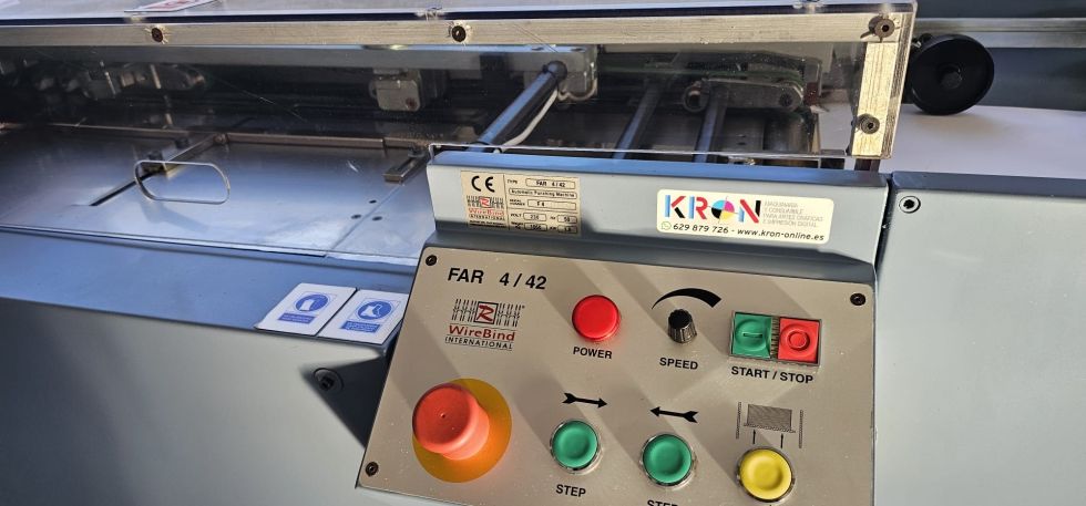 | Detalles | Perforadora automática de alta producción para wire-o y espiral, en excelente estado Formato máximo 30x40 cm, mínimo 95x110 mm Velocidad hasta 150 golpes/minuto Salida eléctrica larga Alimentador automático de alta capacidad Máquina monofásica 230 V Modelo actual disponible con peine de espiral 5:1, otros peines en opción |