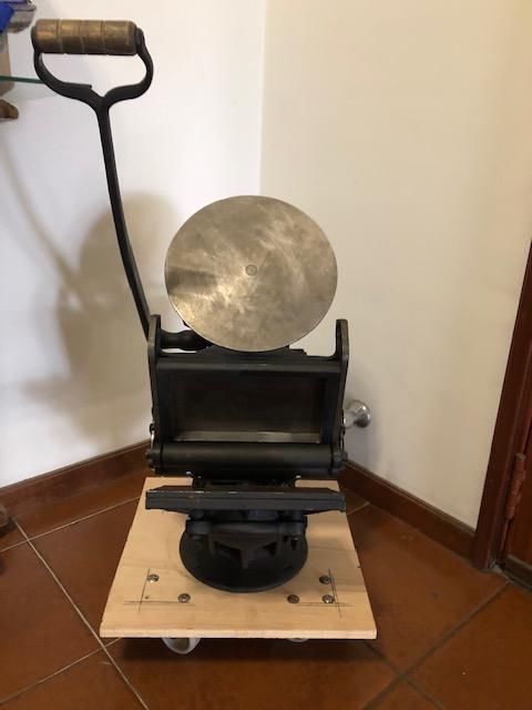 | Detalles | Minerva de braço, de bancada, formato 18x26 cm, marca BOSTON, de fabrico USA, com 2 rolos de borracha e com tintagem de prato rotativo, de colocar em cima de uma bancada. Muito antiga. Em perfeito estado de funcionamento. Entrega imediata. |