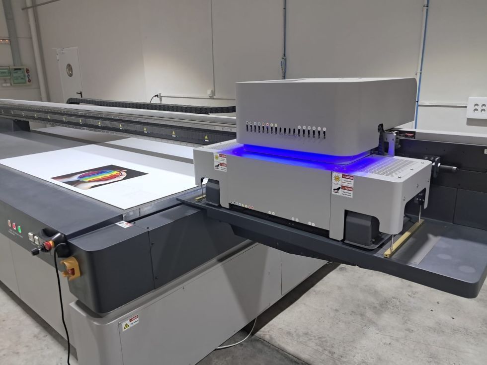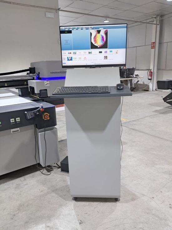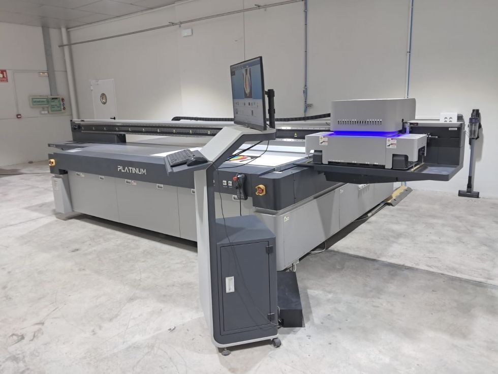 | Detalles | Puede imprimir sobre cualquier superficie, rígida o flexible. Tiene tintas UVI, blanco y barniz. Recién revisada por empresa especializada en este tipo de máquinas. La máquina está funcionando y puede verse y probarse en cualquier momento con cita previa. |