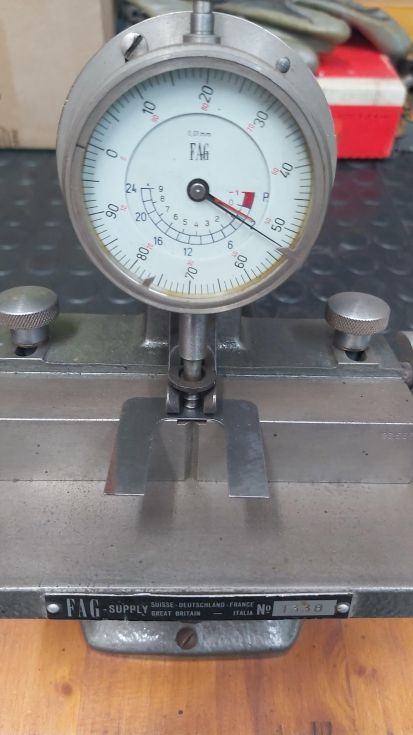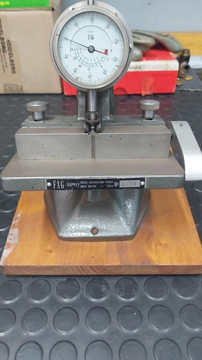 | Detalles | Medidor de espesores sobre mesa de la marca FAG, pieza numerada con el 1338, funcionada perfectamente
