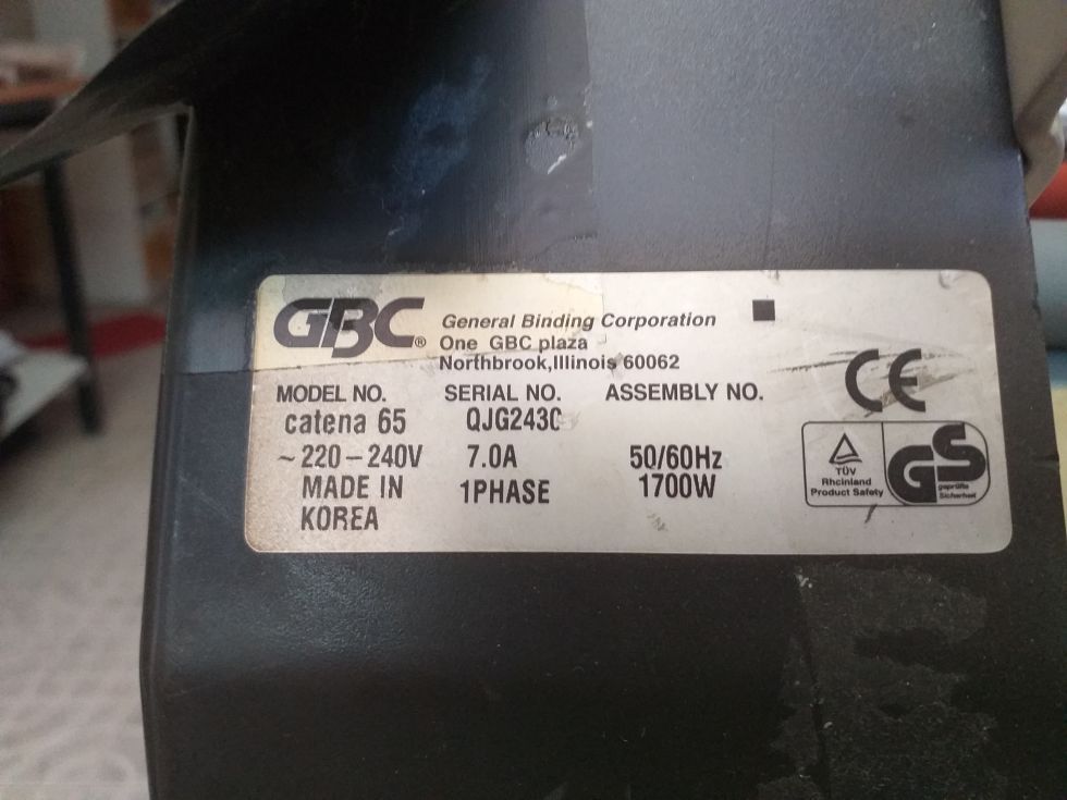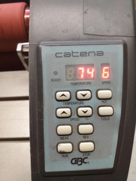 | Detalles | Laminadora profesional Catena GBC 65 con bastante uso pero en buen estado y completamente operativa. Ideal para laminar y plastificar documentos para protegerlos y darles acabados. Funcionamiento manual. Incluye rodilos de plastificado usados pero en buen estado. Ancho máximo de plastificado 65 cm. Tiempo de calentamiento 10 min. Temperatura ajustable hasta 150 grados. Compatible con películas térmicas y frías en brillo o mate. MEDIDAS: Anchura: 90 cm. - Altura: 30 cm. - Profundidad: 43 cm. |
