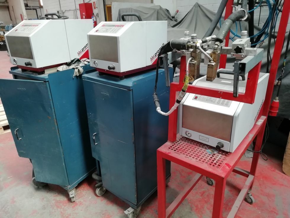 | Detalles | Equipos de cola caliente y fría marca HHS. Compuesto por 3 calderas de cola caliente y 3 calderines de cola fria. 7 inllectores de cola fria 5 pisto as de cola caliente Un programador Consultar precios |