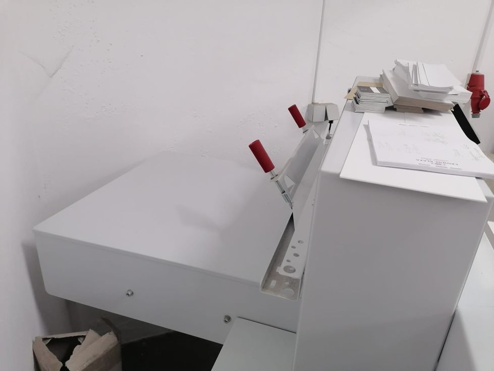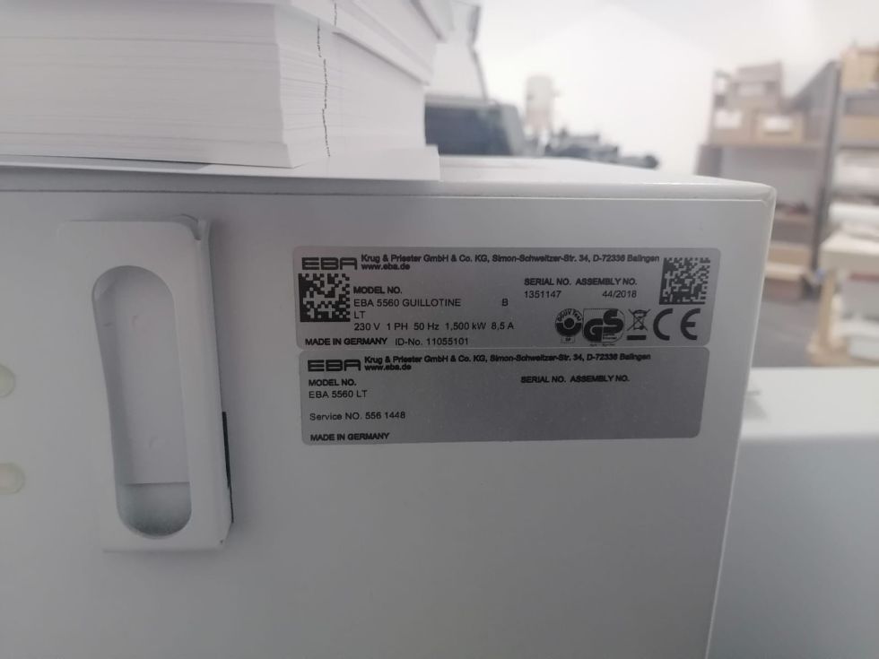 | Detalles | Guilhotina automática, hidráulica, marca EBA, mod. 5560, de 2018, de origem Alemã,com: - Mesas laterais longas; - Painel de comandos eletrónico; - Mesa de ar; - Células fotoelétricas; - Pressão hidraulica; - Luz de corte; - 2 facas. - Mesa traseira protegida ! MÁQUINA EM ESTADO DE NOVA ! PREÇO: 4.500,00 EUR LOT |