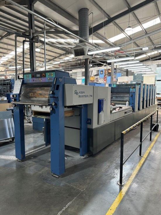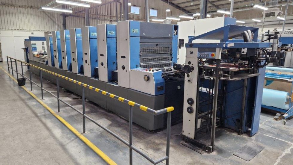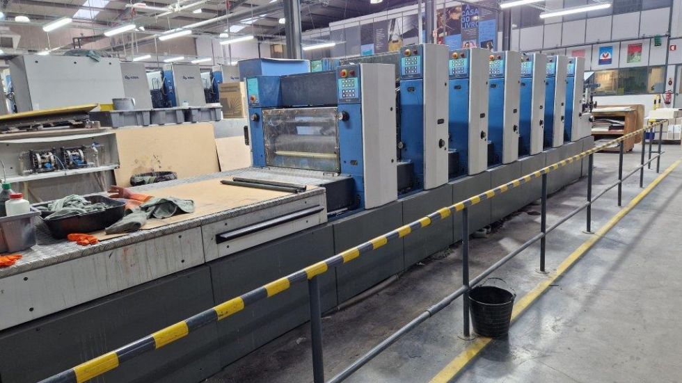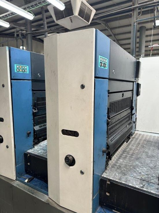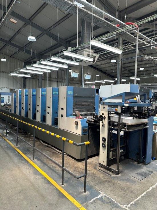 | Detalles | Revestimineto con Sistema de cuchilla de cámara Tresu, Rodullo anilox, Refrigeración Baldwin, ErgoTronic, ColorTronic, PWHA cambiador de planchas (semi)automático, Sistema de mojado Varidamp, Salida ampliada, Dispositivos autpmáticos de lavado de rodillos de tinta, Dispositivos automáticos de labado de mantillas, Plancha de acero en el marcador y la salida, Dispositivo antiestático, Detector capacitivo de doble hoja, Control electromecánico de doble hoja, Control electrónico de alineación lateral, Alisador, Pulverizador de polvo Weko AP 260, Secador Eltosch drytronic IR |