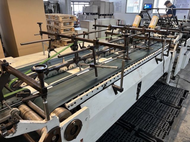 | Detalles | Jagenberg Simplex 875 II + Diana Roto ase Plegado lineal Fondo automático Doble pared Carpetas 4 Puntos y 6 Puntos Formato máximo 600mm x 875mm Formato min. 70mm x 55mm Cartón compacto 180 - 600 g/m2. Ondulados F - E - B Salida prolongada para mayor productividad Se puede ver en producción o inspeccionar por video-llamada VIDEO: https://youtu.be/RCDFMVnRekg?si=hmp3xlX4PWAiMBeN |