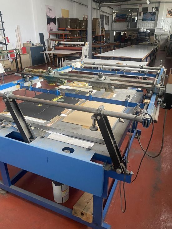 | Detalles | Maquina serigrafia plana con aspirador de aire. En funcionamiento Medida màxima de impresión 120x90 cm |