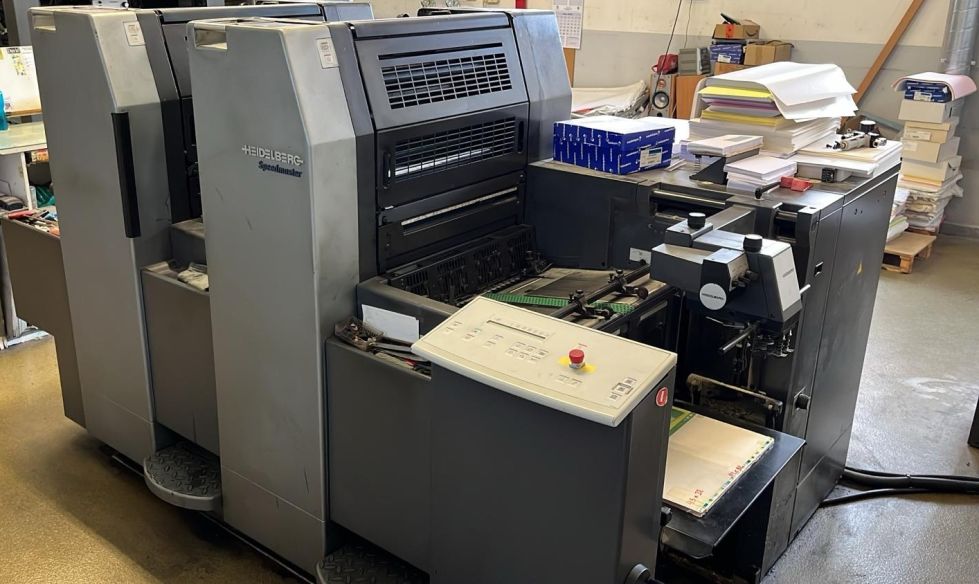 Heidelberg SM52-2 Formato: 52x36 cm Colores: 2 Año: 2000 Numero de serie: 203*** 53 millones de tirajes Mojado Alcolor CP Tronic Todos los Lavadores Automáticos plus Version Refrigerador Autoplate