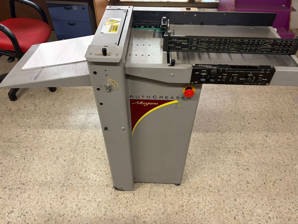 | Detalles | Morgana AutoCreaser es una máquina hendidora automática con alimentación por succión. Está diseñado para su uso con impresoras litográficas y digitales. AutoCreaser puede hender tamaños de hojas hasta un máximo de 630 mm x 330 mm. Manejo de pesos superiores a 400 g/m2. Se pueden programar hasta nueve hendidos en una sola hoja. El hendido y microperforado se programa desde el borde delantero de la hoja usando los controles en el panel frontal. La cuchilla y el yunque se controlan mecánicamente en toda su longitud. Estos se pueden ajustar para acomodar varios pesos de materiales. Morgana AutoCreaser tiene la capacidad de almacenar 9 trabajos separados, lo que permite cambiar de un trabajo a otro en segundos. |