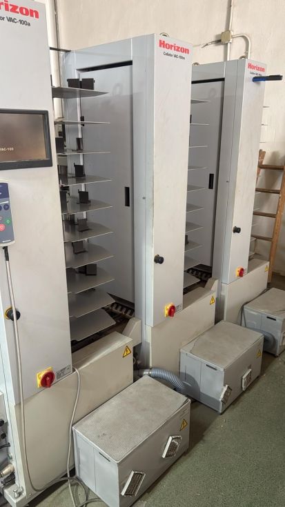 | Detalles | Se vende directamente de cliente, tren de confección de revistas Horizon En muy buen estado 3 alzadoras de succión VAC-100 Módulo de grapado y plegado SPF-200A Módulo de corte frontal FC-200A Puede verse en funcionamiento Muy buen precio |