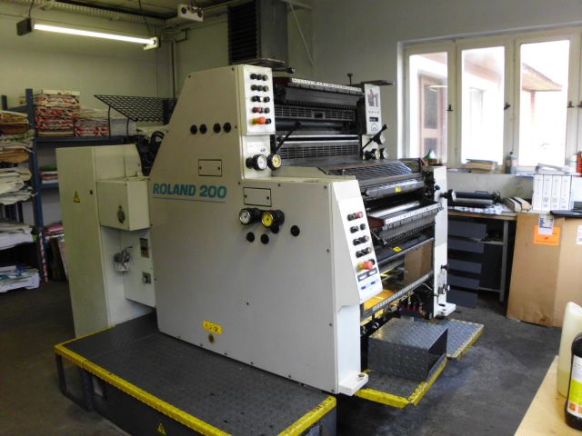 | Detalles | Rolandmatic grupo mojador con circulación y refrigeración mesa de cintas aspiradoras guias de cartón mordazas de sujeción rápidas de las planchas sistema de registro pulverizador salida de pila baja sólo 34 mio. de impresiones |
