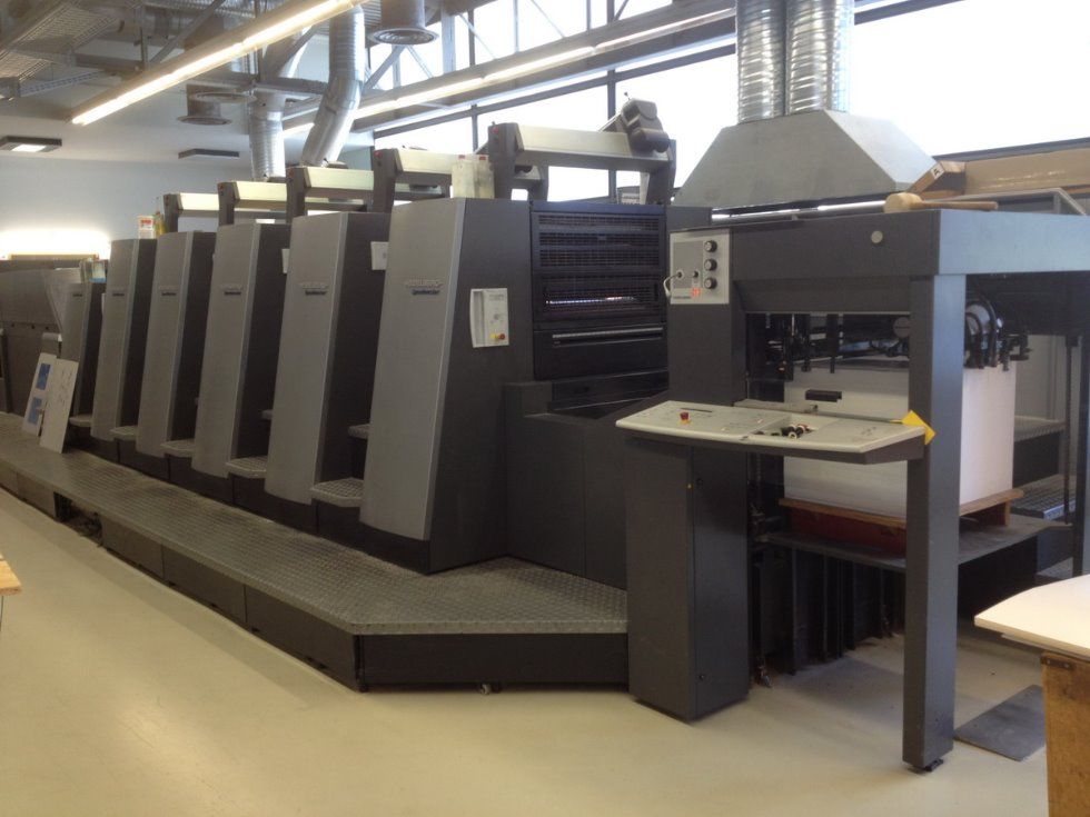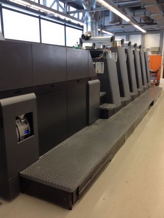 | Detalles | sólo 69 mio. de impresiones torre de barniz (racleta de cámera) Axis Control CP2000 Consola de Control con telemando para zonas de entintado, velocidad de los rodillos del tintero, los registros circunferencial, lateral y diagonal, con lápiz de luz, Job Memory Card y pantalla táctil ALCOLOR grupo mojador con circulación y refrigeración CombiStar atemperador de las Baterías AUTOPLATE sistema automático de cambio de planchas PRESET ajuste automático al formato del pliego dispositivo de lavado automático de los rodillos entintadores dispositivo de lavado automático de la mantilla y cilindro impresor pulverizador Grafix Exatronic IR-secador DryStar salida de pila alta y prolongada X2 accesorios standard |