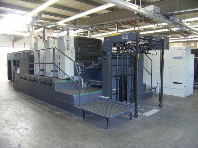 | Detalles | reversible 1/1, 2/0 torre de barniz (racleta de cámera) RCI dispositivo de control de entintado a distancia y teleajuste para los registros circunferencial, lateral y diagonal Rolandmatic grupo mojador con circulación y refrigeración Atemperador de las baterías APL cambio de planchas automatizado para introducción y extracción de las planchas ajuste automático de los formatos dispositivo de lavado automático de los rodillos entintadores dispositivo de lavado automático de la mantilla y cilindro impresor lavado para cilindro impresor del barniz mesa de cintas aspiradoras cuerpos impresores individuales con cilindros impresores de doble diámetro superficie de los cilindros portaplanchas, de caucho e impresores de superficie ennoblecida aplanador de pliegos ionizador Kersten pulverizador salida de pila alta y prolongada Becker Vario Air Sistema accesorios standard máquina elevada 275 mm |