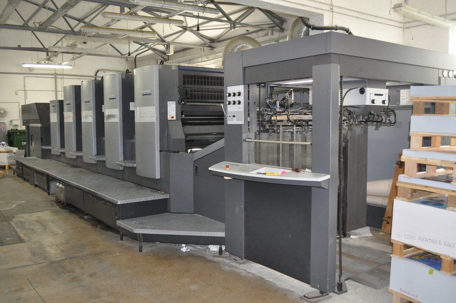 | Detalles | torre de barniz (Anilox) Axis Control CP2000 Consola de Control con telemando para zonas de entintado, velocidad de los rodillos del tintero, los registros circunferencial, lateral y diagonal, con lápiz de luz, Job Memory Card y pantalla táctil ALCOLOR Vario grupo mojador con circulación y refrigeración CombiStar atemperador de las baterías AUTOPLATE sistema automático de cambio de planchas PRESET Plus ajuste automático al formato del pliego dispositivo de lavado automático de los rodillos entintadores dispositivo de lavado automático de la mantilla y cilindro impresor CleanStar succión de polvo pulverizador IR-secador DryStar 3000 salida de pila alta con AirTransfer System accesorios standard |