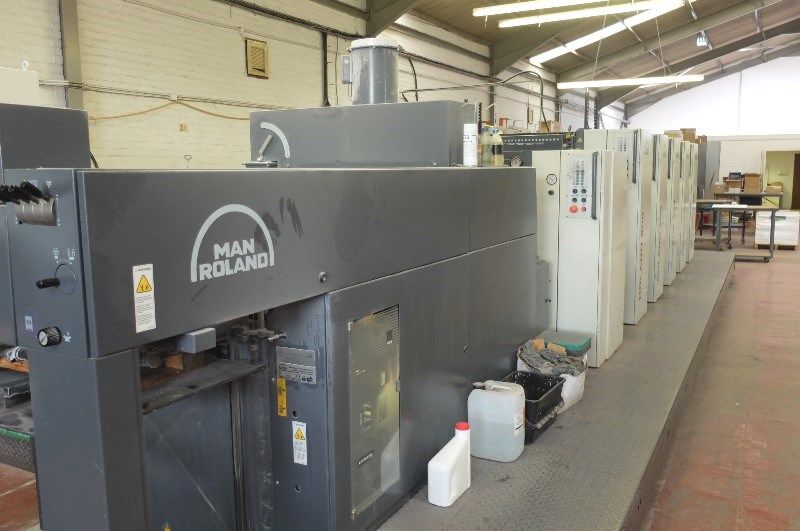 | Detalles | torre de barniz RCI dispositivo de control de entintado a distancia y teleajuste para los registros circunferencial, lateral y diagonal Rolandmatic grupo mojador con circulación y refrigeración Atemperador de las baterías CPL cambio de planchas semi-automático ajuste automático de los formatos dispositivo de lavado automático de los rodillos entintadores dispositivo de lavado automático de la mantilla y cilindro impresor mesa de cintas aspiradoras superficie de los cilindros portaplanchas, de caucho e impresores de superficie ennoblecida pulverizador Weko IR-secador aplanador de pliegos salida de pila alta y prolongada accesorios standard |