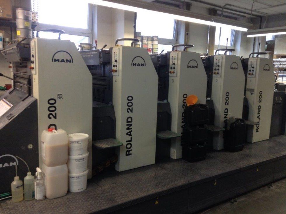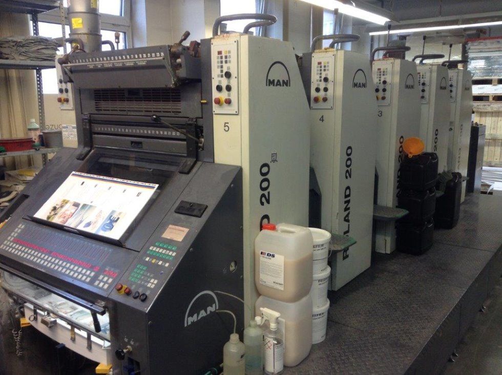 Color Pilot Smart Online RCI dispositivo de control de entintado a distancia y teleajuste para los registros circunferencial y lateral Rolandmatic grupo mojador con Technotrans circulación y refrigeración EPL Ergonomic Plate Loading lavado automático de caucho guias de cartón pulverizador Grafix aplanador de pliegos salida de pila baja accesorios standard