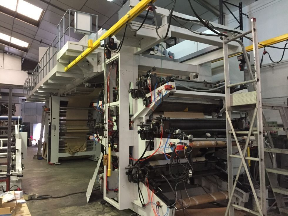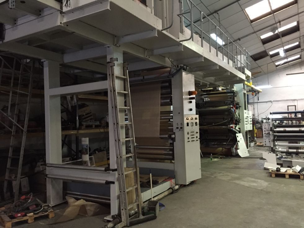 | Detalles | Impresora Flexografica Flexotecnica Restaurada como nueva Rodillos anilox Ceramicos, Rasqueta Doctor Blade, Retirada automatica de rodillos, Tunel de Secado Doble, Tambor Central Rectificado, Arrimada y retirada de tinteros motorizada, Cableado electrico nuevo, Sistema de camisas en Porta cliches, Sistema de Frenado en Desbobinador por medio de frenos electromagneticos, Rebobinadores Dobles con sistema automatico de cambio de bobinas,