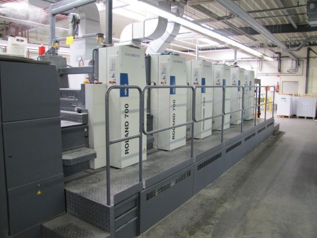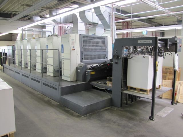 | Detalles | reversible 2/3, 5/0 torre de barniz ColorPilot D RCI dispositivo de control de entintado a distancia y teleajuste para los registros circunferencial, lateral y diagonal Rolandmatic grupo mojador con circulación y refrigeración PPL cambio de planchas automatizado para introducción y extracción de las planchas ajuste automático de los formatos dispositivo de lavado automático de los rodillos entintadores dispositivo de lavado automático de la mantilla y cilindro impresor mesa de cintas aspiradoras cuerpos impresores individuales con cilindros impresores de doble diámetro superficie de los cilindros portaplanchas, de caucho e impresores de superficie ennoblecida aplanador de pliegos pulverizador IR-secador salida de pila alta y prolongada con AirGlide accesorios standard |