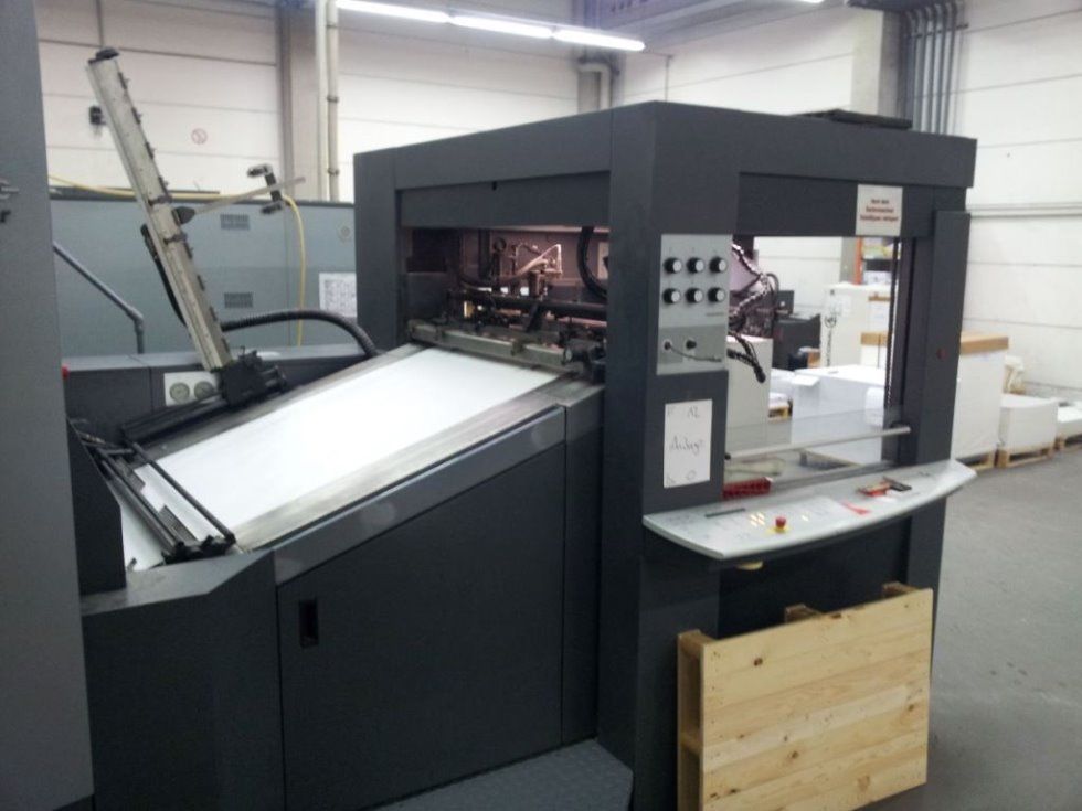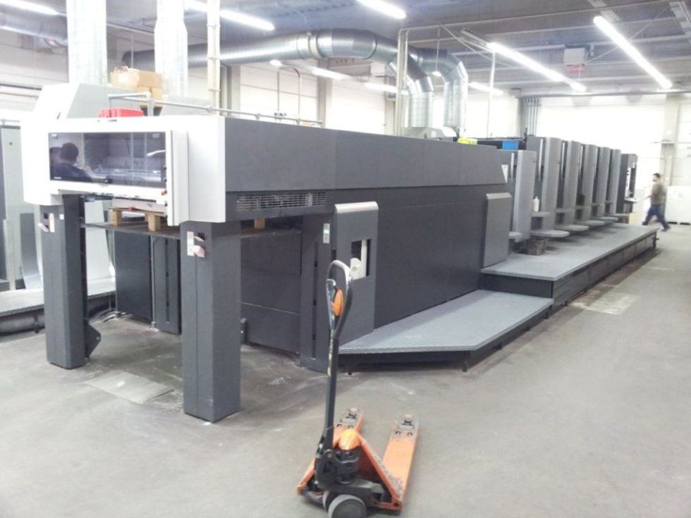 | Detalles | torre de barniz (racleta de cámeras) CP2000 Consola de Control con telemando para zonas de entintado, velocidad de los rodillos del tintero, los registros circunferencial, lateral y diagonal, con lápiz de luz, Job Memory Card y pantalla táctil ALCOLOR grupo mojador con circulación y refrigeración CombiStar atemperador de las baterías CombiStar atemperador de las baterías AUTOPLATE sistema automático de cambio de planchas PRESET Plus ajuste automático al formato del pliego dispositivo de lavado automático de los rodillos entintadores dispositivo de lavado automático de la mantilla y cilindro impresor WashStar 1 x UV Interdeck Secador (para todos los 5 cuerpos) 1 x UV secador final IST con 3 lámperas 1 x IR-secador pulverizador salida de pila alta y prolongada con AirTransfer System accesorios standard |