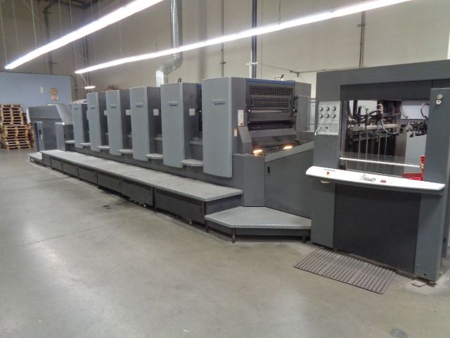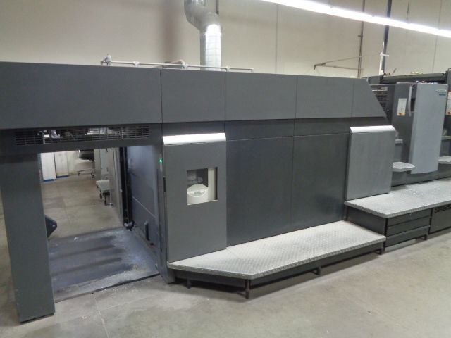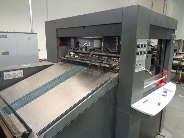 | Detalles | solo 64 mio. de impresiones torre de barniz CP2000 Consola de Control con telemando para zonas de entintado, velocidad de los rodillos del tintero, los registros circunferencial, lateral y diagonal, con lápiz de luz, Job Memory Card y pantalla táctil ALCOLOR Vario grupo mojador con circulación y refrigeración Atemperador de las baterías AUTOPLATE sistema automático de cambio de planchas PRESET ajuste automático al formato del pliego dispositivo de lavado automático de los rodillos entintadores dispositivo de lavado automático de la mantilla y cilindro impresor pulverizador IR-secador DryStar 3000 salida de pila alta y prolongada con AirTransfer System accesorios standard |