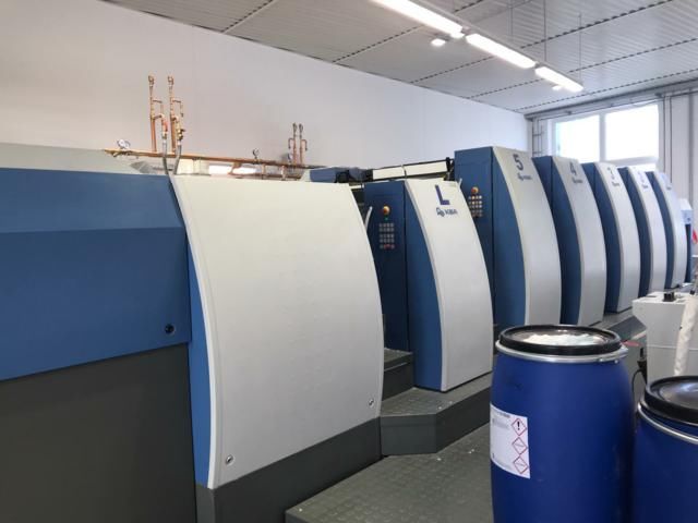 | Detalles | torre de barniz (racleta de cámera) Qualitronic - Inline control de colores WallScreen Logotronic Consola de Control con telemando para zonas de entintado y los registros circunferencial, lateral y diagonal Varidamp grupo mojador con circulación y refrigeración Atemperador de las baterías PWVA cambio automático de las planchas SPC cambio simultaneo de las planchas SIS Sensoric Infeed System dispositivo de lavado automático de rodillo dispositivo de lavado automático de caucho y cilindro impresor IR-secador y aire caliente pulverizador salida de pila alta y prolongada accesorios standard |