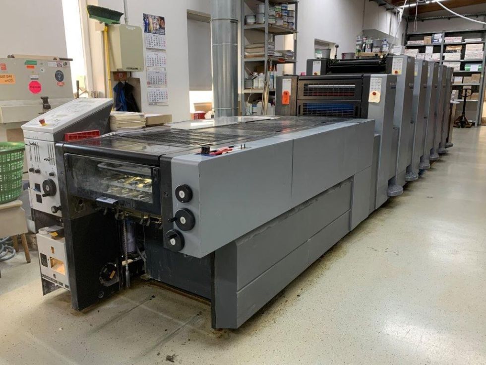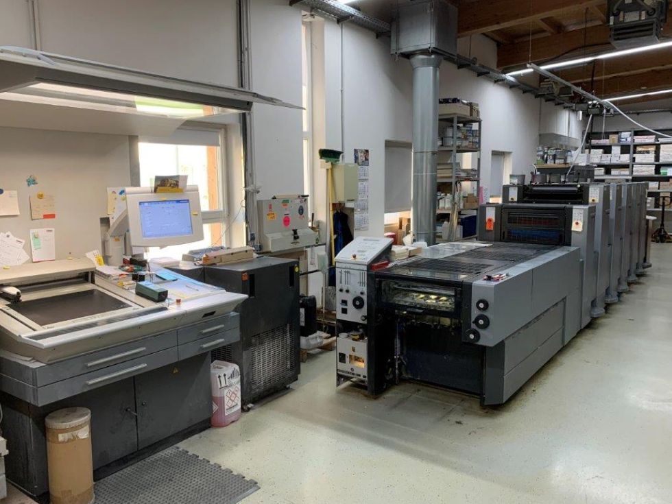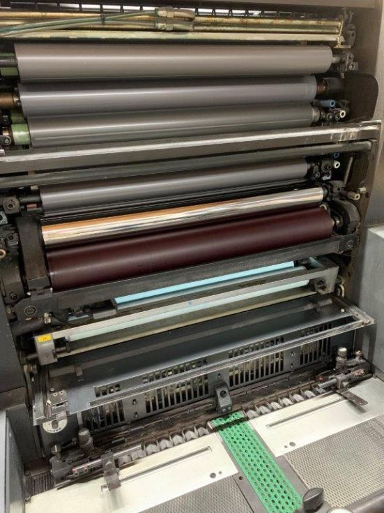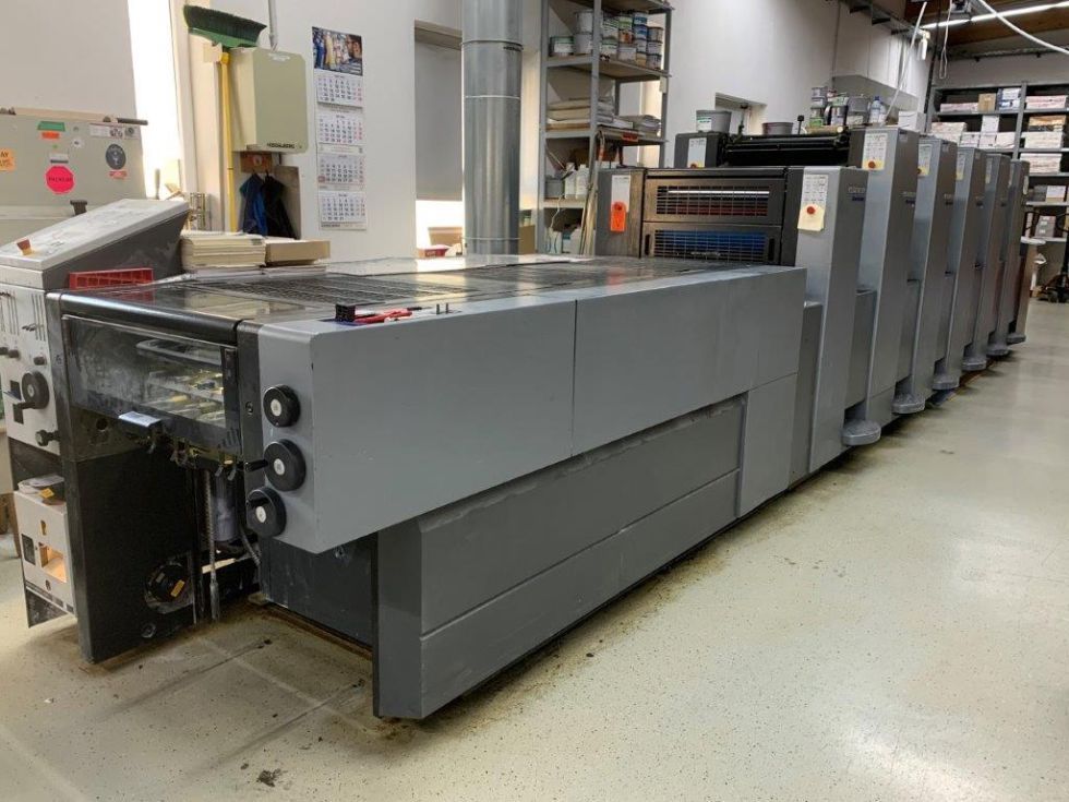 | Detalls | torre de barniz Axis Control CP2000 Consola de Control con telemando para zonas de entintado, velocidad de los rodillos del tintero, los registros circunferencial, lateral y diagonal, con Job Memory Card y pantalla táctil ALCOLOR grupo mojador con circulación y refrigeración AUTOPLATE sistema automático de cambio de planchas dispositivo de lavado automático de los rodillos entintadores dispositivo de lavado automático de la mantilla y cilindro impresor (tipo nuevo) pulverizador Grafix Alphatronic 200 salida de pila alta y prolongada accesorios standard |