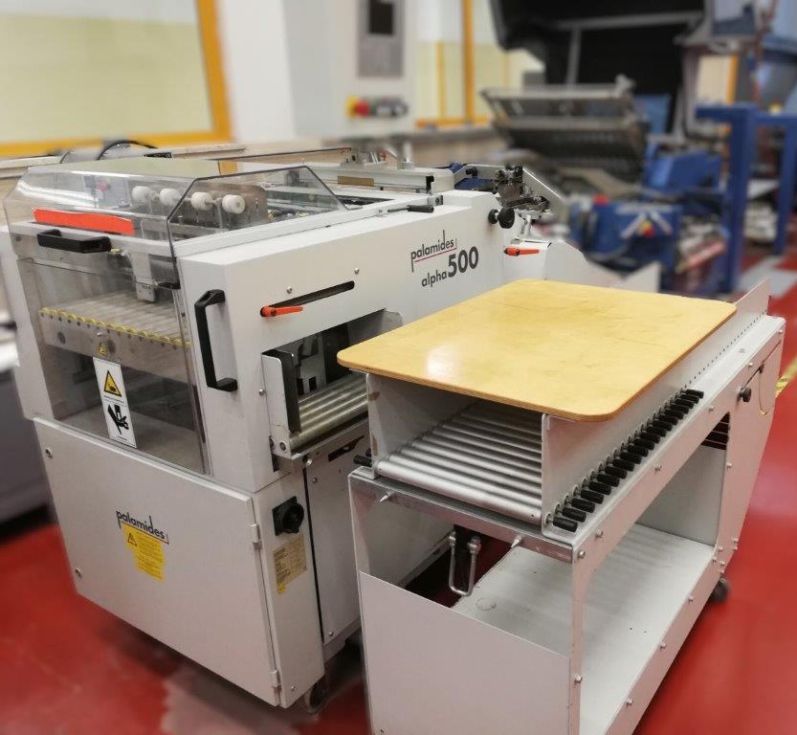 | Detalls | Marcador pallet, Sistema de alimentación de hoas por vacío y alineación de hojas VIVAS, Navigator machine control with touchscreen, Cabezales anti-ruido, Eje de corte retráctil, 4 bolsas, Unidad KTZ giratoria, 1ª cuchilla de plegado transversal, Bolsa adicional después de la 1ª cuchilla, 2ª cuchilla de plegado transversal, Opción: Palamides Alpha 500 salida apilador (2006) |