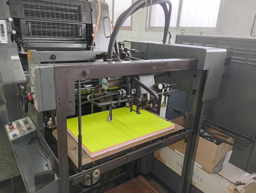 | Detalls | maquina en buen estado, actualmente está usandose. sólo 22 mill. de impresiones. se incluye troqueladora plachas bacher. |