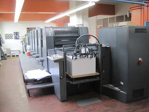 | Detalls | reversible 2/3, 5/0 CP-Tronic comandament digital de la màquina CPC 1-04 Consola de Control amb telemando per a zones d'entintat, corró de tinter, els registres lateral, circunferencial i diagonal, amb llapis de llum i targeta de memòria ALCOLOR grup mojador amb circulació i refrigeració Atemperador de les bateries AUTOPLATE sistema automàtic de canvi de planxes dispositiu de rentat automàtic dels corrons entintadores dispositiu de rentat automàtic de la mantilla i cilindre impressor pulverizador Grafix Alphatronic 200 ionizador Eltex sortida de pila alta accessoris standard max. 15'000 plecs / hora |