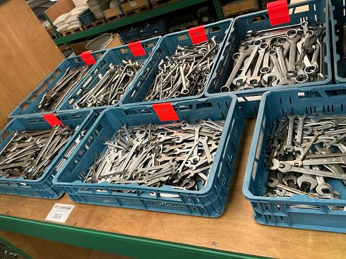 Dimensiones de 6 a 41 mm / aproximadamente 370 llaves inglesas, 150 llaves anulares y 110 llaves inglesas / total 630 piezas / variadas e incluyendo 8 cajas de apilamiento de plástico (600x400mm) |