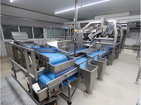 Consta de: máquina de clasificación óptica "Odenberg", con sistema mecánico de eyección por los dedos, control táctil "Tomra", búnker de entrada de acero inoxidable con entrada lateral/superior, cinta transportadora oblicua de paso inferior, cinta transportadora de entrada situada en altura, totalmente equipada con 2 cintas transportadoras de paso inferior y entrada transversal con criba vibrante y cinta transportadora, incluyendo plataformas con suelo de listones y superficie total de suelo utilizado: 10500x4750 mm |
