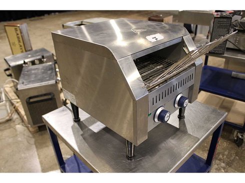 Dos lonchas de pan caben una al lado de la otra en la cinta transportadora. Dos elementos calefactores separados. Adecuado para tostar pan en rebanadas de forma continua. Equipado con bandeja delantera y trasera. El tiempo de tránsito puede establecerse en 3 minutos. |