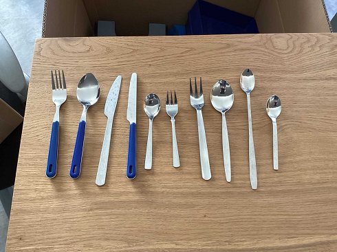 | Nombre | Cubertería, tenedores, cuchillos, tenedores para tarta, cucharas, cucharas de café, varios diseños, aproximadamente 240 piezas, foto, selección aleatoria |