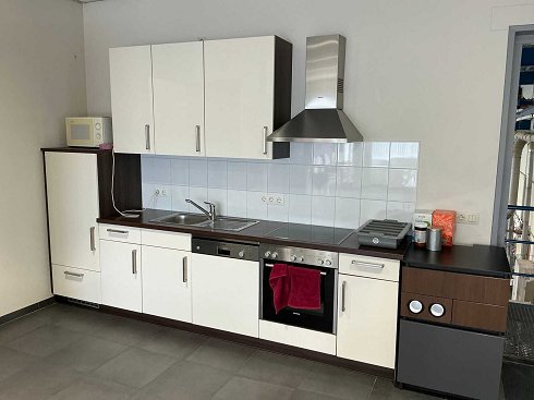Consiste en: los objetos sueltos de la cocina (vajilla, cubiertos, cristalería), un armario de café con dispensadores de tazas, estantería con diversas bebidas, accesorios para café y té, etc. |