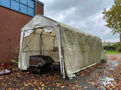 Altura 300/380 cm, equipado con bastidor tubular galvanizado, lado de PE, tirantes y varios, con caja de almacenamiento |