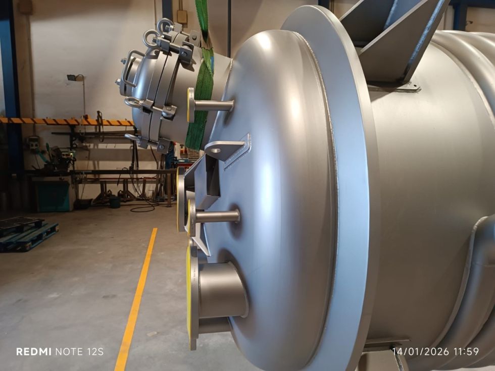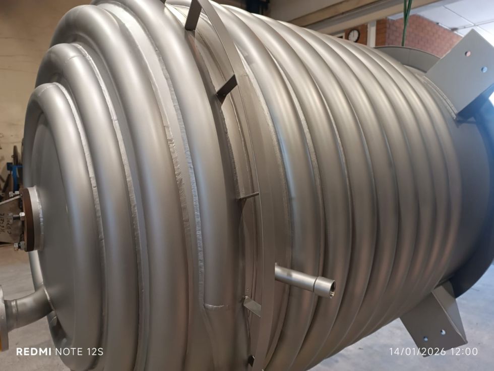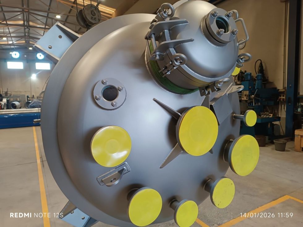 | Detalles | Fabricado en el año 2020. Nunca se ha utilizado ni se ha llegado a instalar. Material en Inox-316L. Con media caña tanto en el cuerpo como en el fondo inferior. Fondo superior Klopper con boca de hombre y diversas tubuladuras. Fondo inferior Klopper con salida centrada. Agitación tipo áncora con motorreductor de 4Kw a 43rmp y para zona clasificada II 2G h IIB T4 Gb X. Sobre 4 cartelas. |