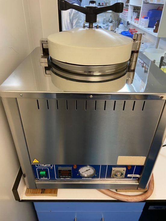 | Detalles | Autoclave vertical de laboratorio RAYPA modelo AE-12 del año 2000. Volumen 12 litros. Sin secado. |