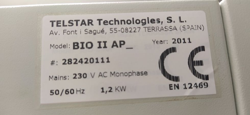 | Detalls | Cabina de seguridad microbiológica TELSTAR BIO II A/P. Fabricada en el año 2011. Disponible documentación. Precio a convenir. |