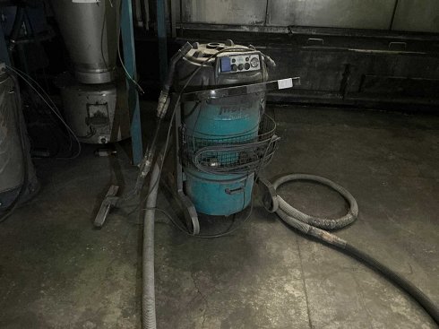 Aspiradora industrial CFM Aspiradora industrial móvil, marca CFM, para la extracción de polvo y astillas en entornos de producción. Montado sobre una base con ruedas con depósito de recogida, manguera de succión y panel de control en la tapa superior. Dimensiones totales aproximadas (L × W × H): 700 × 500 × 1.300 mm. Peso aproximado: 50 kg. Funcionalidad no probada. El lote se entrega cargado en un camión. Los costes de desmantelamiento y carga se indican como costes adicionales.