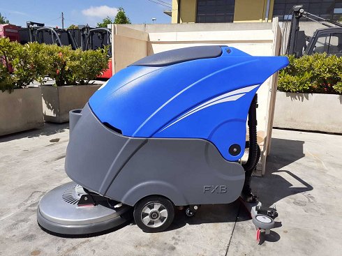 Depurador industrial de suelos alimentado por batería, encendido electrónico con tarjeta, equipado con cargador rápido, capacidad de trabajo: 3000 metros/hora, nunca utilizado, empaquetado en su