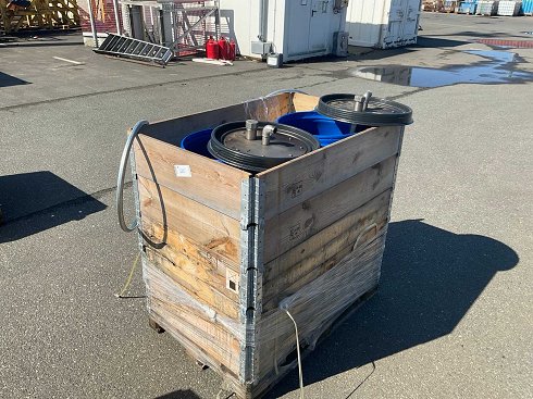 Con contenido residual, contenido residual desconocido, en stock sobre palet, dimensiones totales aprox. 1200x800x1250 mm